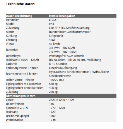 EEC Elektroauto E-GO! eK4 4kW Gleichstrommotor Straßenzulassung 45km/h2 Personen Zulassung | Digital Tacho | Glashubdach | Elektrische Fensterheber
